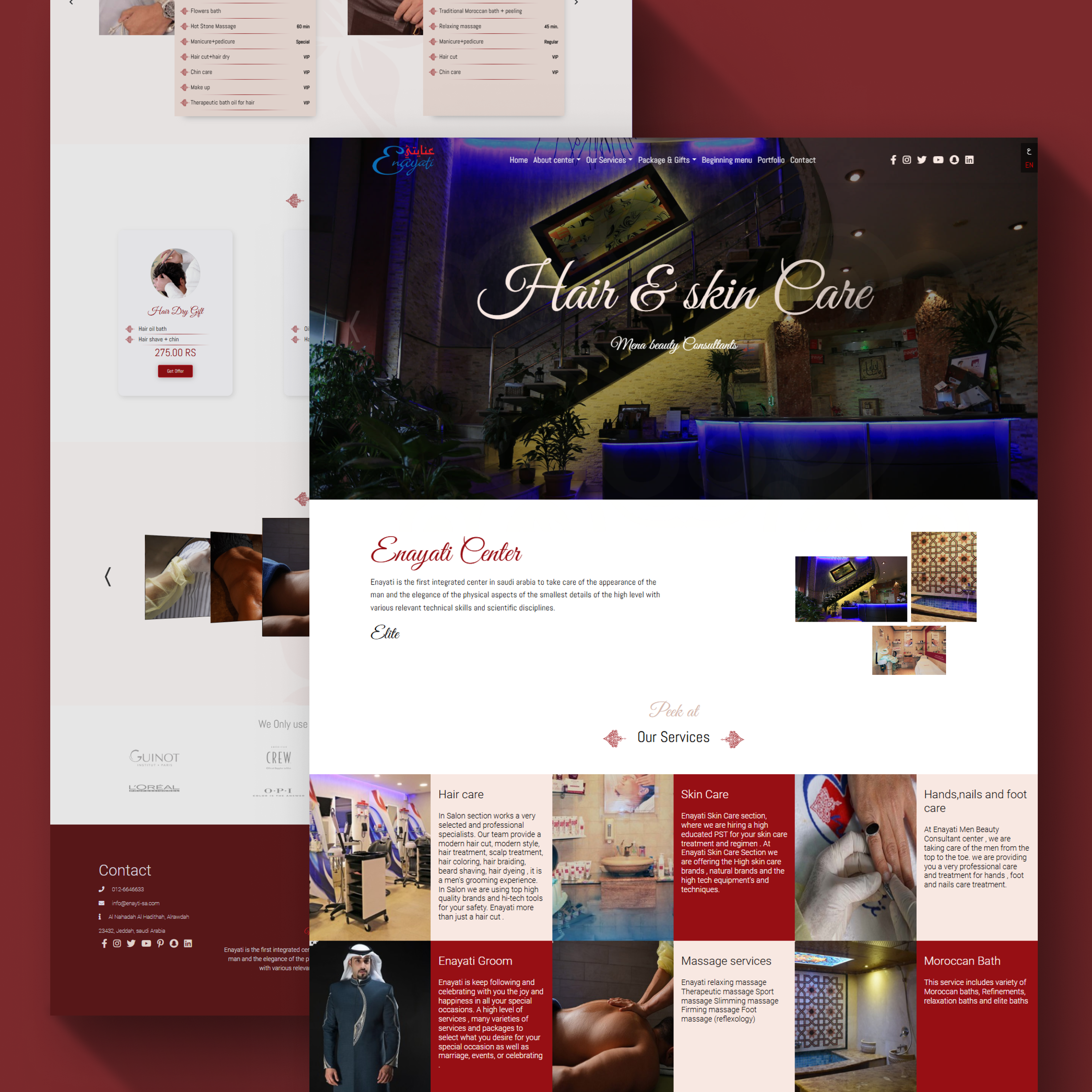 A website for Enayati salon & men's beauty center to show their services, prices, photo gallery, and contact information.