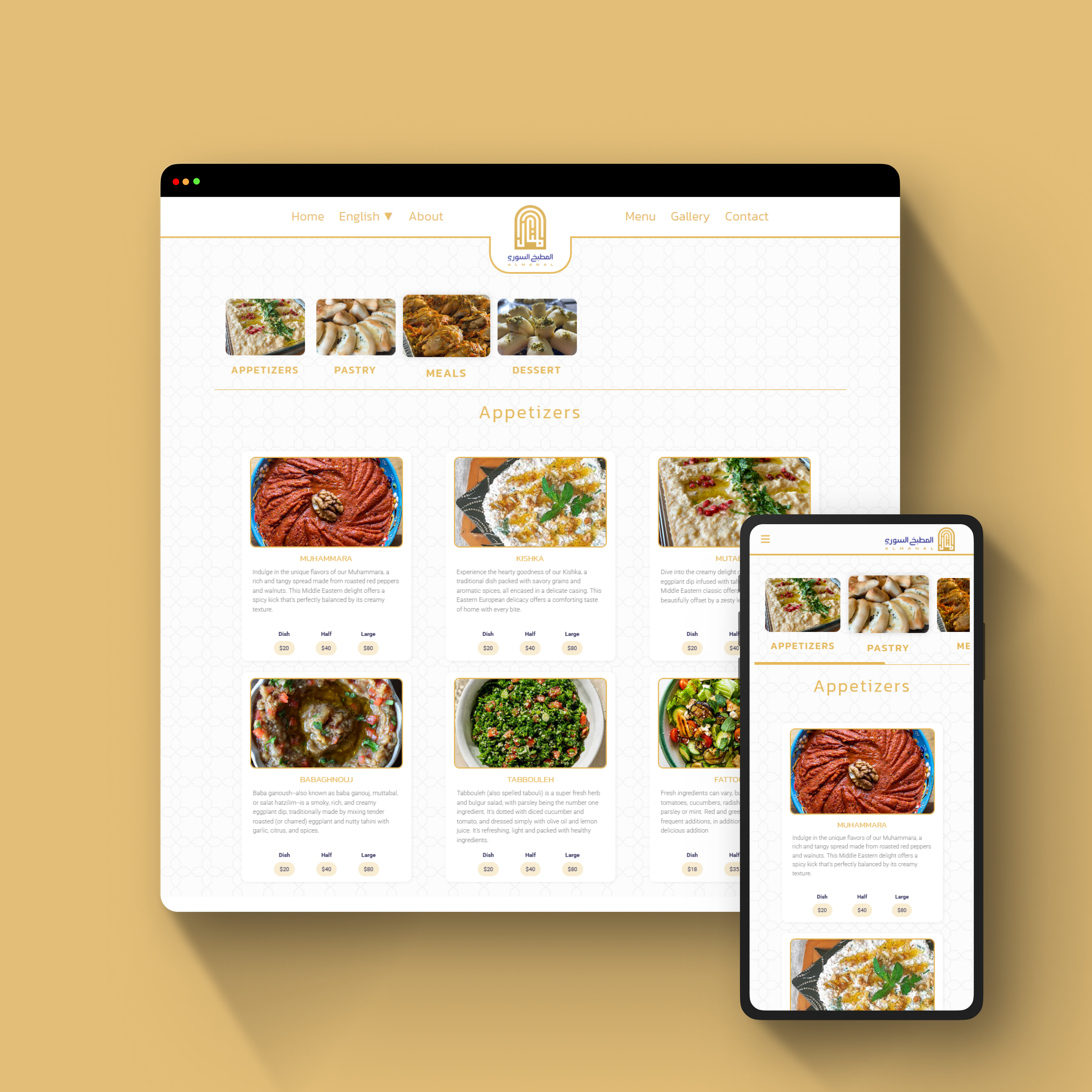 Al-Manal Restaurant Website with fully interactive menu, multiple prices, add-ons, gallery, reviews, and more