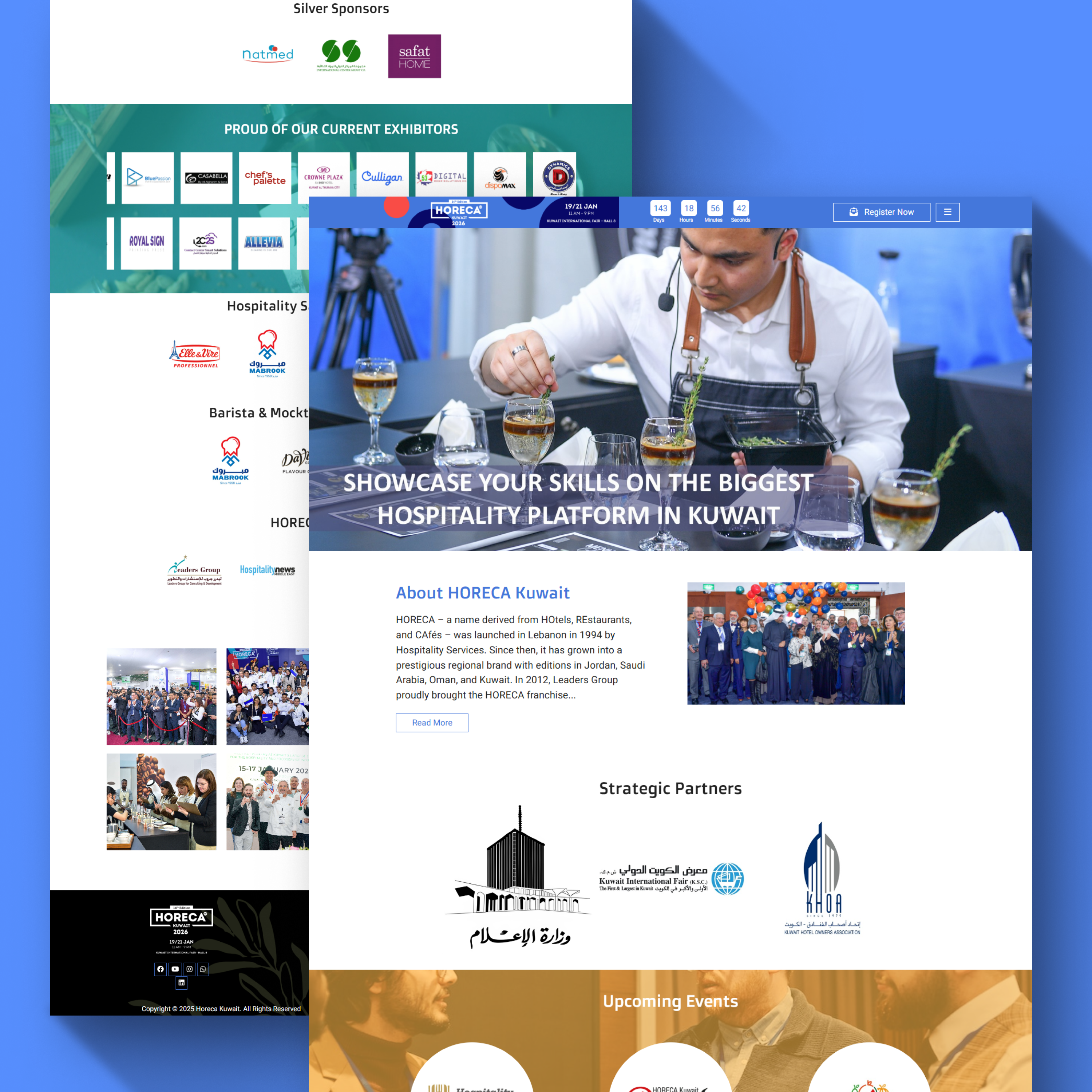 Horica Kuwait website, where they show their rich amount of sponsors, exhibitors, as well as showcasing their upcoming events, with the ability to register directly from the website.